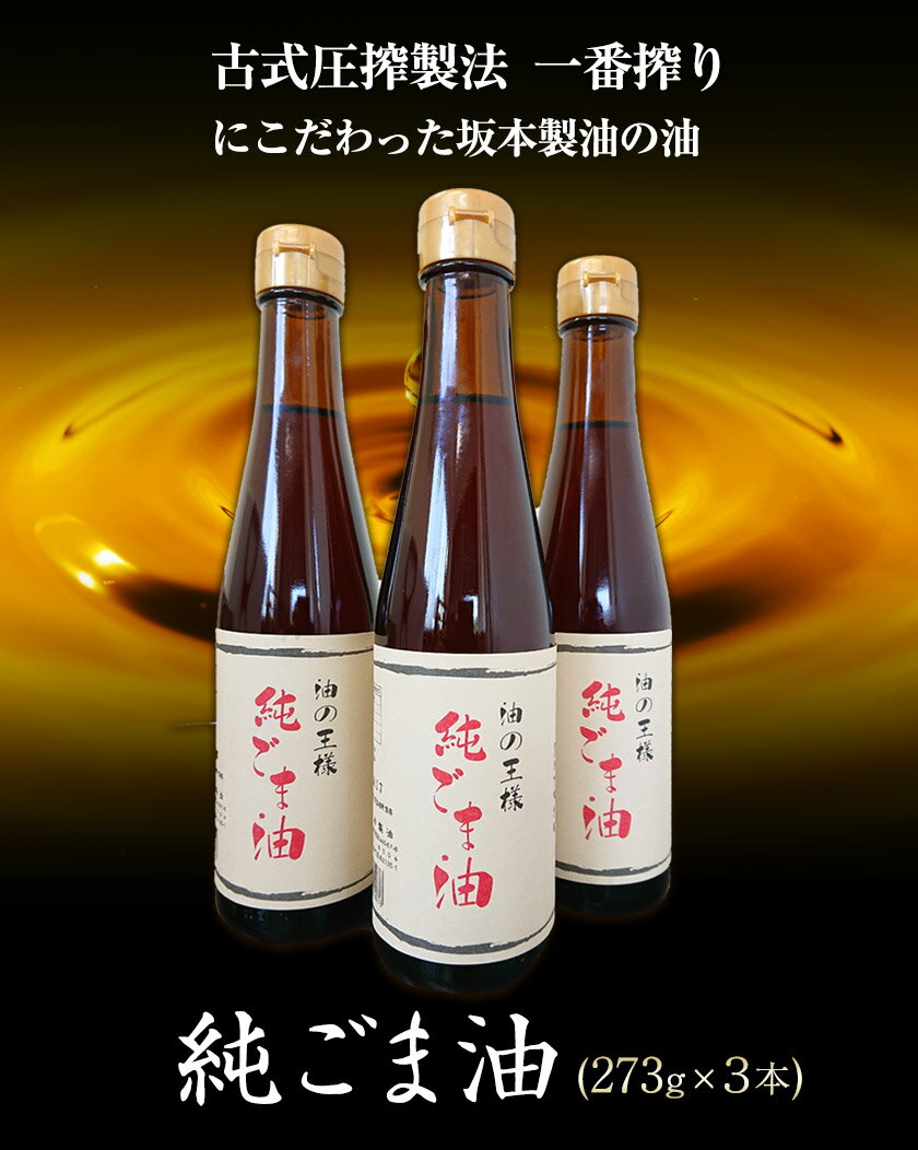 【ふるさと納税】【3ヶ月定期便】坂本製油の純ごま油 3本セット 273g×3本 計819g 有限会社 坂本製油《お申込み月の翌月から出荷開始》 熊本県 御船町 ごま油 調味料 定期便 3回届く 合計9本 合計2457g