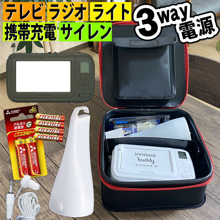 【すぐに使える!防災ラジオ&電池セット】 innowa Buddy(バディー) ホワイト オリーブ 3WAY電源 充電池 乾電池 手回し ワンセグTV LEDライト 携帯充電 モバイルバッテリー 防災グッズ 防災用品(みつはぴ)