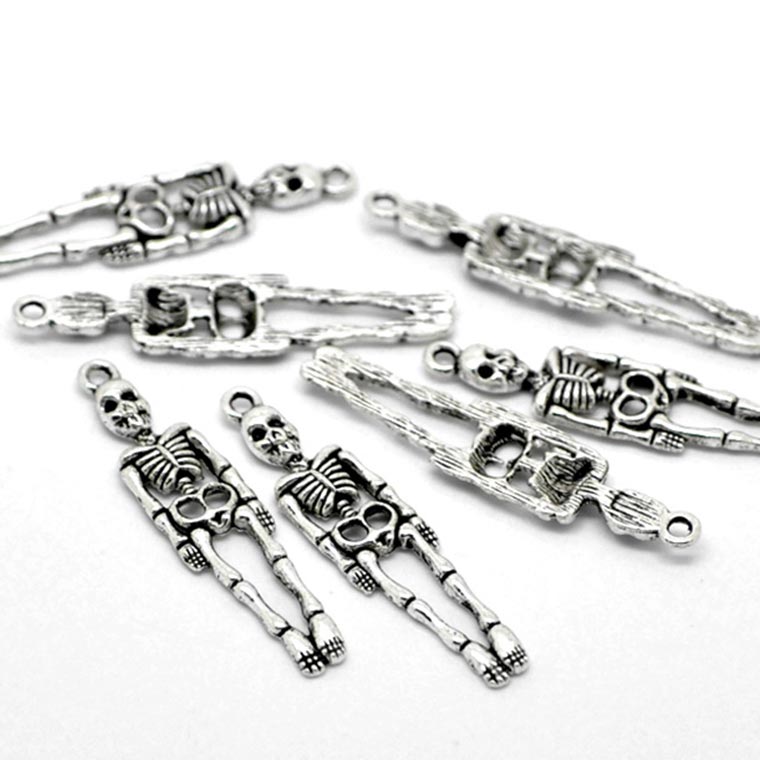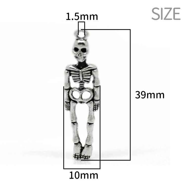 3個入 39mm×10mm メタルチャーム ハロウィン ガイコツ 銀古美 / チャーム 装飾パーツ デコレーション ドクロ スカル 骸骨 髑髏 ボーン スケルトン イベント パーティ ペンダントパーツ シルバーカラー アクセサリー ハンドメイド材料【ゆうパケット対応】