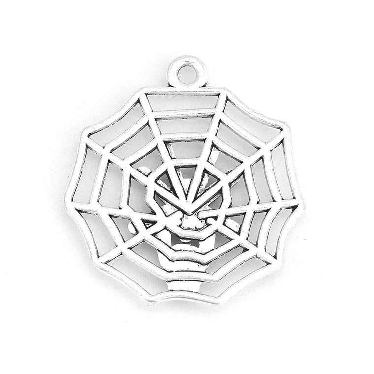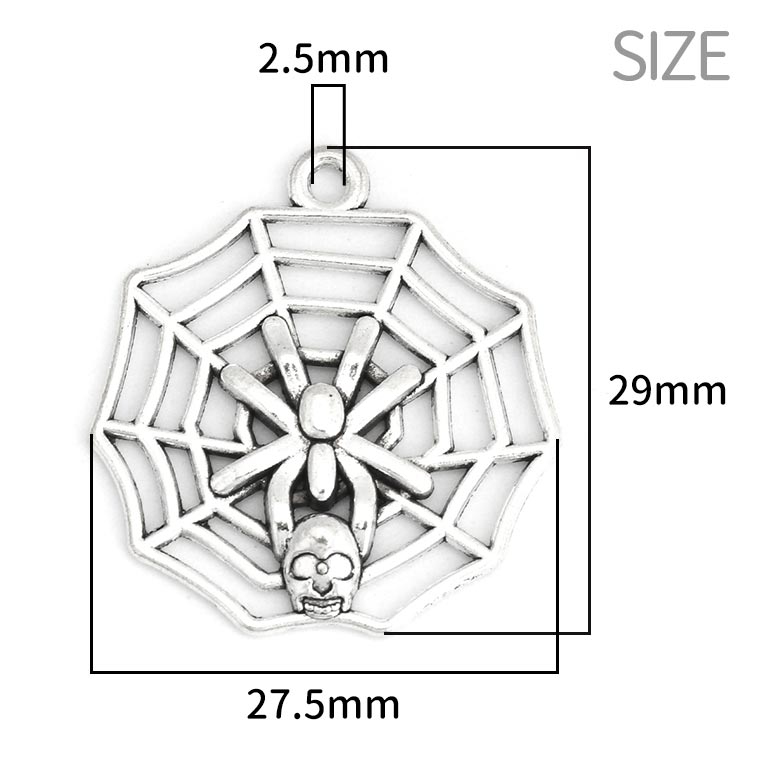 5個入 27.5mm×29mm メタルチャーム ハロウィン 蜘蛛 ガイコツ 銀古美 / チャーム 装飾パーツ デコレーション スパイダー ドクロ スカル クモの巣 ペンダントパーツ シルバーカラー アクセサリー ハンドメイド材料【ゆうパケット対応】