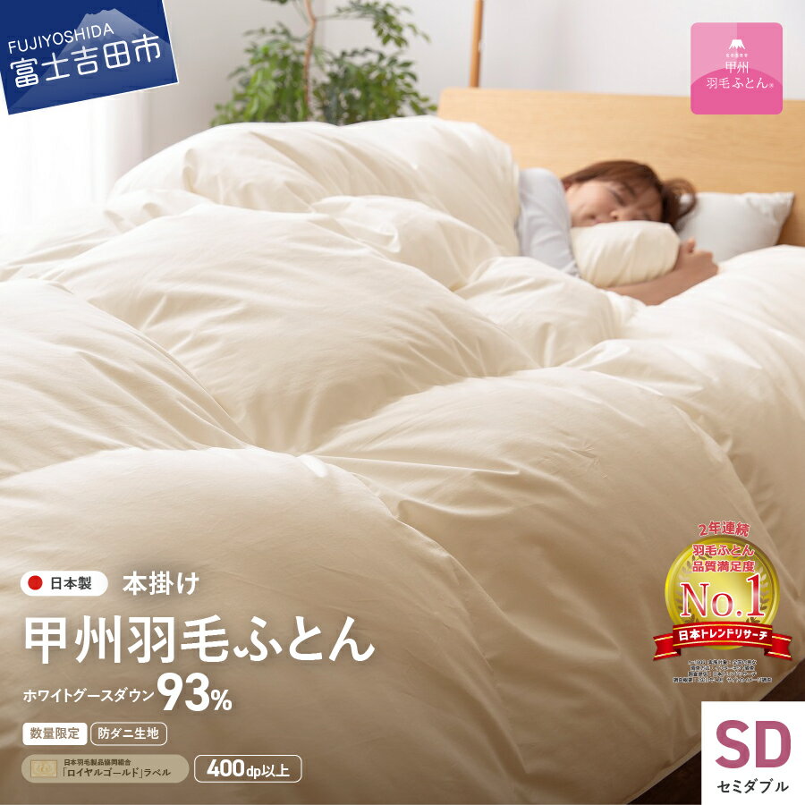【ふるさと納税】 羽毛布団 掛け布団 ロイヤルゴールドラベル シングル 日本製 肌掛け アイボリー 無地 ホワイトグース ダウン93% フェザー 手洗い可 高級 寝具 【甲州羽毛ふとん】