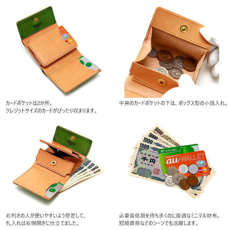 Detail 商品説明 ■素材:牛革 ■サイズ:W9× H8× D3(cm) ■重量:約80g プレゼントに最適な「2番目の財布」をコンセプトに、どんな小さなバッグにもどんなポケットにも収まる極小サイズのミニ財布です。