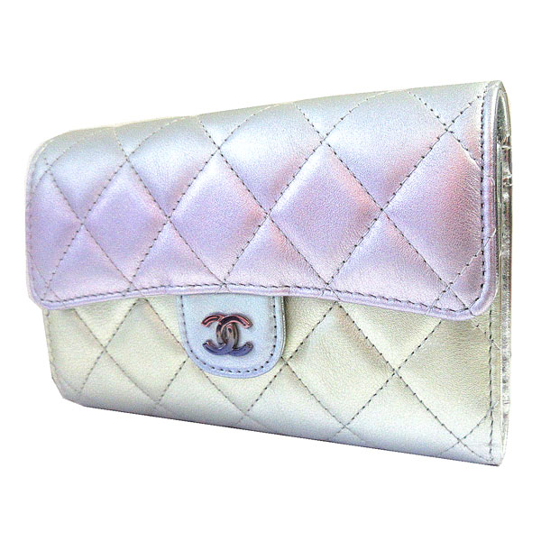 大阪にお越しの際にはぜひお立ち寄りください! 〒542-0085 大阪府大阪市中央区心斎橋筋1-2-24玉置ビル1F南側1号≪新品≫CHANEL シャネル 2021-22年AWコレクション マトラッセ ミディアム フラップ ウォレット 中財布 シルバー ブルー イエロー パープル グラデーションc メタリック CCマーク AP0232 B06794 NF476 Medium flap wallet Silver 箱 リボン カメリア ラッピング ココ ブランド名シャネル シリーズ名2021-22年秋冬コレクション 商品名マトラッセ ミディアム フラップ ウォレット 中財布 AP0232 B06794 NF476 サイズW15×H10.5×D3cm/札入れ1・小銭入れ1・カード入れ5・マチなしポケット2・背面ポケット1 色シルバー ブルー・イエロー・パープルグラデーション 素材メタリック カーフスキン 付属品内袋・箱・リボン・ショッパー・カメリア・ギャランティカード ※CHANELの刻印につきまして、シャネルはフランスだけでなく、イタリア、スペインにも工場があり、生産地の違いによりMADE IN FRANCE、MADE IN ITALY、MADE IN SPAINがございます。